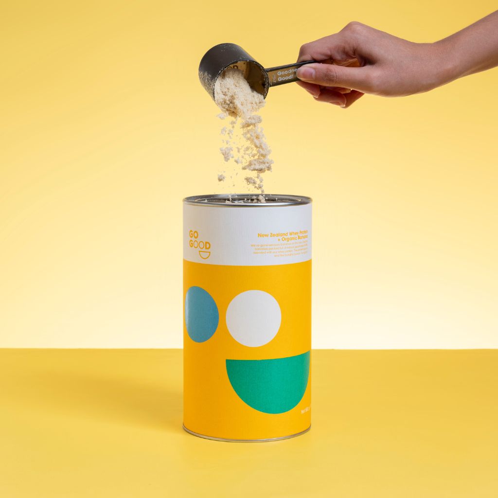 We’ve put the same love and care into our packaging as we have into our protein powders. Our canisters are made from 90% recycled cardboard, our scoop is compostable and even the packaging tape is plastic free. Go Good… go guilt free.